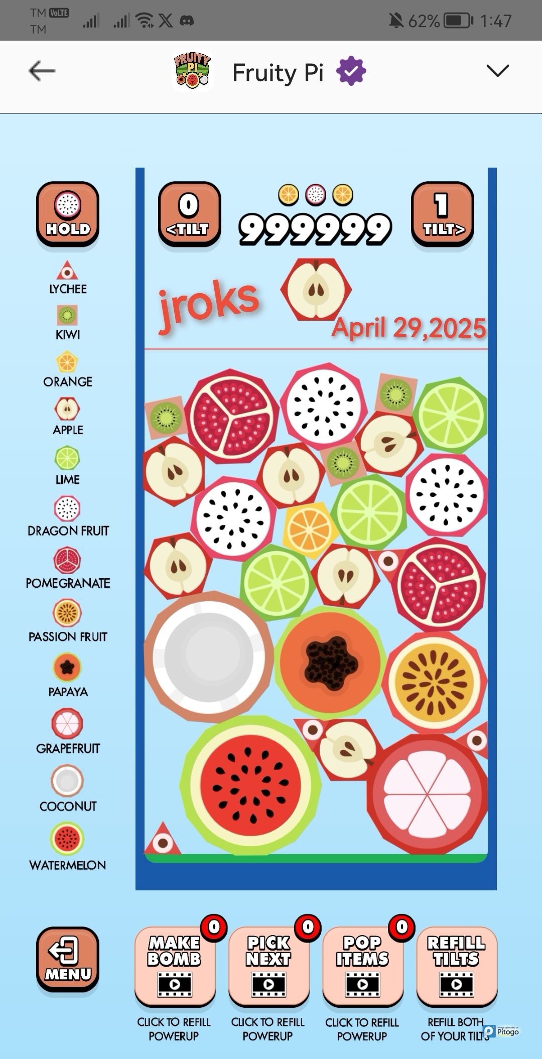 #FruityPi @999999 Top score