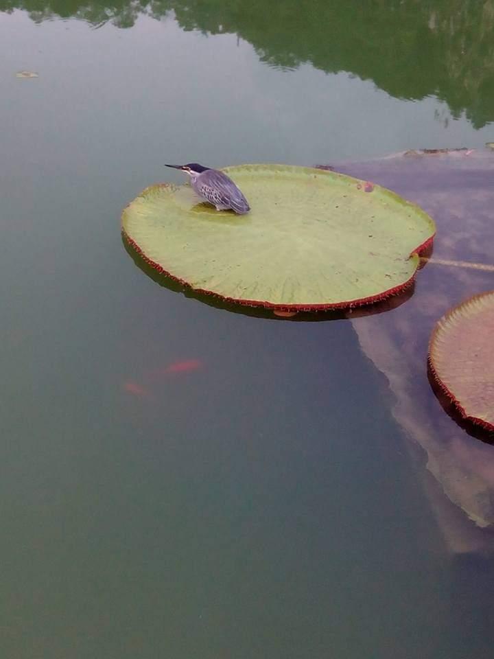 绿鹭 Butorides striata A Butorides striata or known as striated heron was standing on a Amazon water lily. Maybe it was waiting to ambush prey. #绿鹭 #Butorides_striata #striated_heron #mangrove_heron #little_green_heron #green-backed_heron #bird