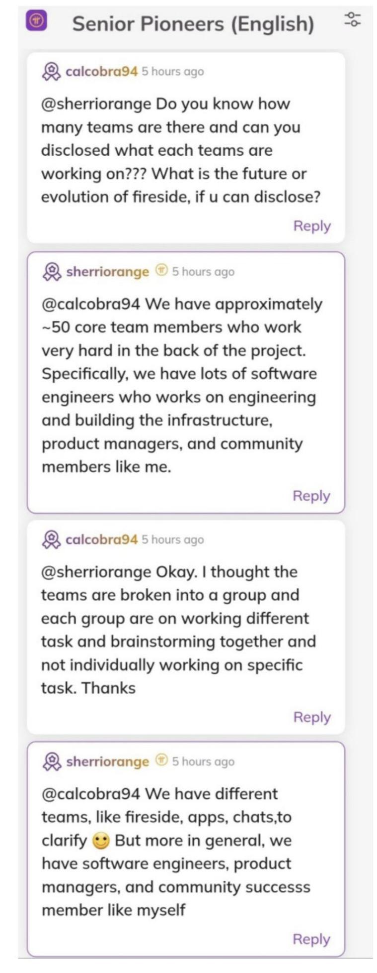 • Pi Network have different teams, like fireside, apps, chats,to clarify But more in general, @PiCoreTeam have software engineers, product managers, and community success member like Moderators.