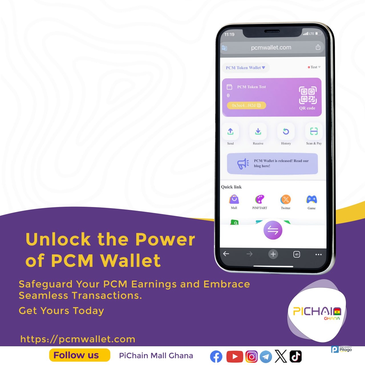 WHY YOU SHOULD CONSIDER ENROLLMENT NOW:• The launch of the PCM Wallet allows users to easily and securely manage their digital assets within the Web3 ecosystem. The wallet stores cryptocurrencies like $PCM tokens, enabling users to make seamless payments and receive tokens. It also offers secure and swift transactions, ensuring the safety of user funds and privacy protection. The PCM Wallet serves as a gateway to various products and services within the PiChain Global ecosystem and simplifies the process of creating Web3 accounts by abstracting away the complexity of managing private keys. Register PCM Wallet and get $PCM test tokens:: https://pcmwallet.com FAQ &Learn more: https://app.gitbook.com/o/pMh61j23OzxljXwfGRSM/s/aKevr4nil6xvy1XKYtbX/