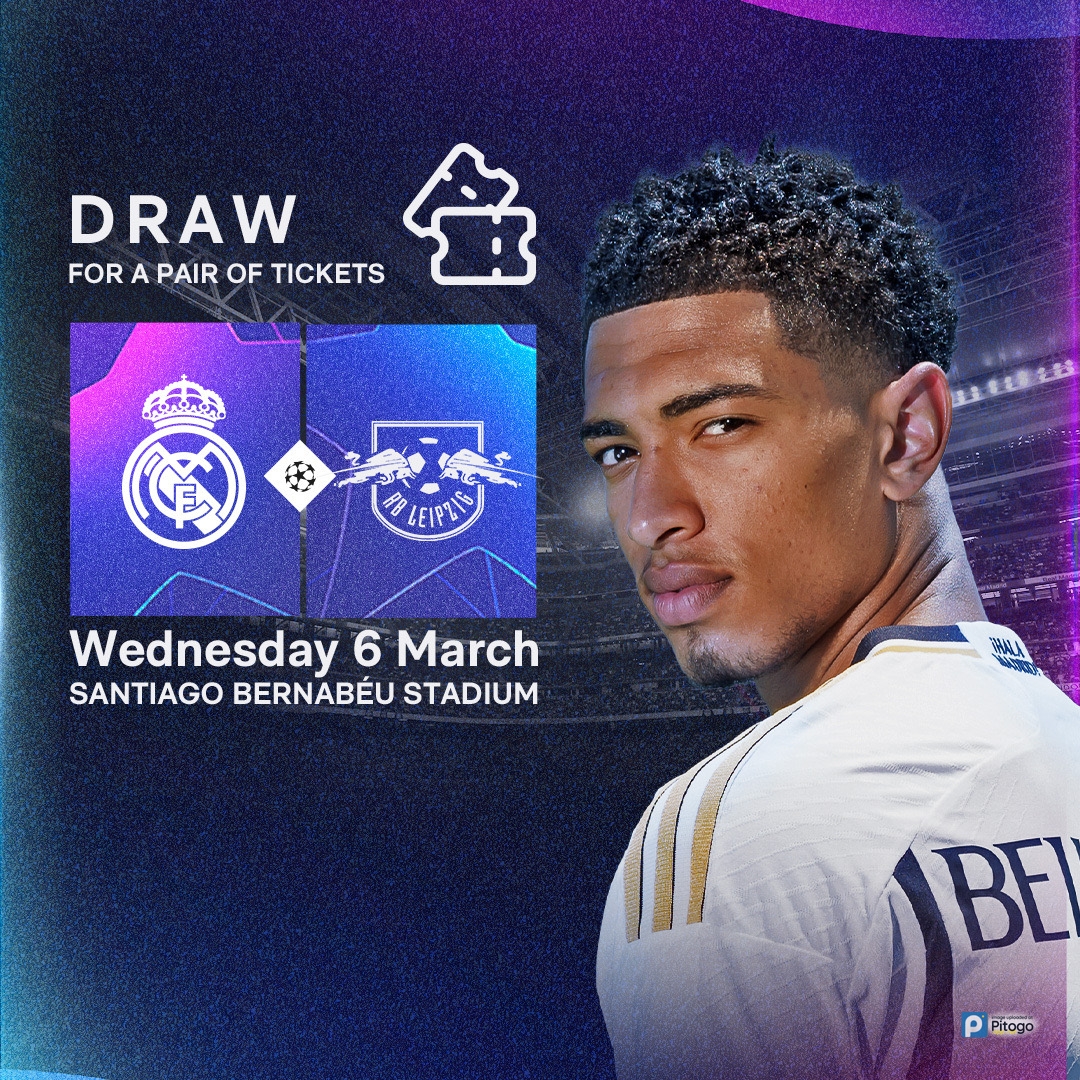 🀩 Do you want to win TWO tickets for a big UCL night at the Bernabéu? Take part in our special prize draw! 🎟️ ¡Participa en nuestro sorteo y podrás ganar una entrada doble para un PARTIDAZO en el Bernabéu! πŸ†š Leipzig (06/03/24) πŸ‡¬πŸ‡§ bit.ly/Prize_Draw_ πŸ‡ͺπŸ‡Έ bit.ly/SorteoRMvsRBL_WA
